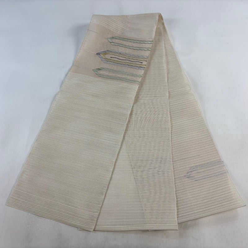 夏帯でございます。 セミフォーマルでお使いいただける名古屋帯でございます。 見る人に重たい印象を感じさせない女性ならではの、気品豊かな一品です。 締め跡がございます。 前柄お太鼓間に薄いシミがございます。 裏地に薄いシミがございます。 リユース品としては目立った染み傷なく、状態の良いお品でございます。 ※なお、厳しく商品の状態確認を行っておりますが、記載の汚れ以外にも見落とし箇所がある可能性がある旨ご了承いただけますと幸いです。 沢山の商品の中からご覧いただき誠にありがとうございます。