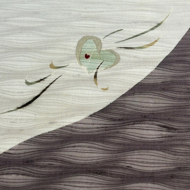 夏帯でございます。 セミフォーマルでお使いいただける名古屋帯でございます。 見る人に重たい印象を感じさせない女性ならではの、気品豊かな一品です。 表地所々にヤケ、お太鼓垂境間にシミ、お太鼓と前柄に金彩の変色がございます。 リユース品としては良い状態で、まだまだご活用頂けると思われます。 ※なお、厳しく商品の状態確認を行っておりますが、記載の汚れ以外にも見落とし箇所がある可能性がある旨ご了承いただけますと幸いです。 沢山の商品の中からご覧いただき誠にありがとうございます。