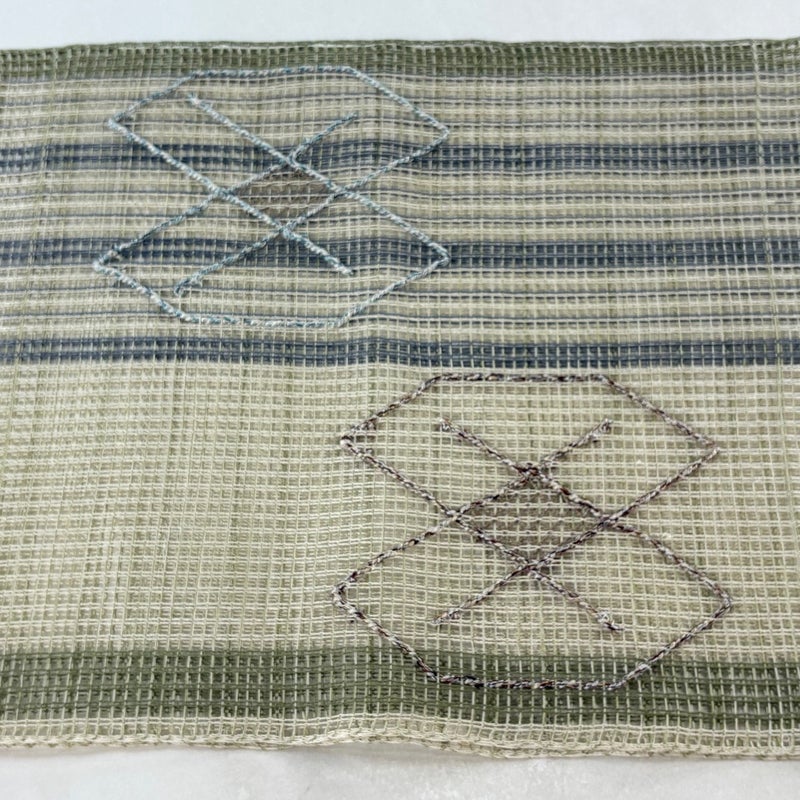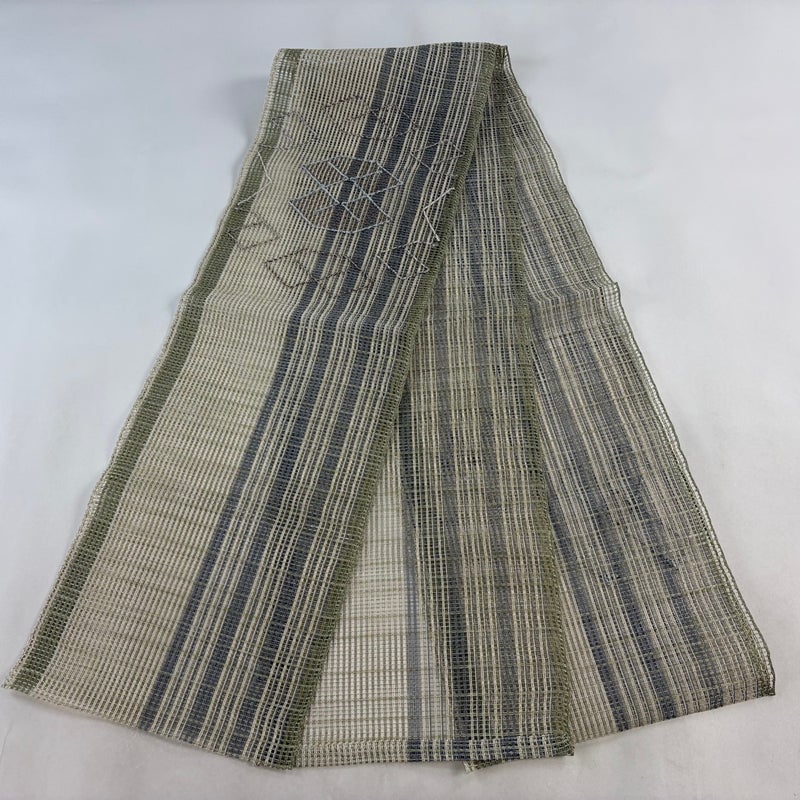 夏帯でございます。 セミフォーマルでお使いいただける名古屋帯でございます。 見る人に重たい印象を感じさせない女性ならではの、気品豊かな一品です。 前柄に点シミがございます。 リユース品としては目立った染み傷なく、状態の良いお品でございます。 ※なお、厳しく商品の状態確認を行っておりますが、記載の汚れ以外にも見落とし箇所がある可能性がある旨ご了承いただけますと幸いです。 沢山の商品の中からご覧いただき誠にありがとうございます。