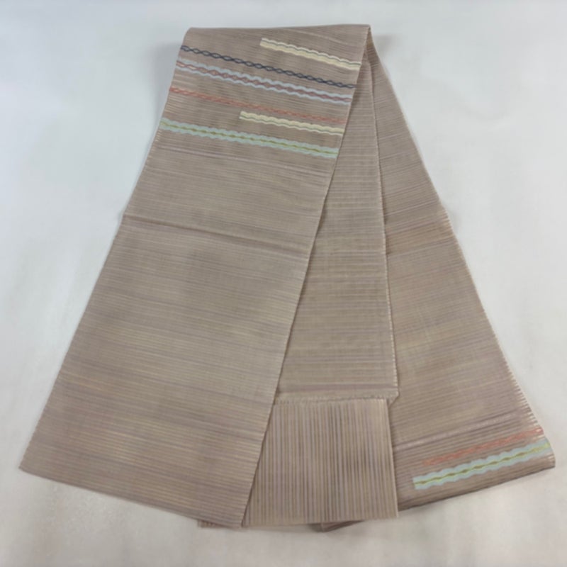 夏帯でございます。 セミフォーマルでお使いいただける名古屋帯でございます。 見る人に重たい印象を感じさせない女性ならではの、気品豊かな一品です。 リユース品としては目立った染み傷なく、状態の良いお品でございます。 ※なお、厳しく商品の状態確認を行っておりますが、記載の汚れ以外にも見落とし箇所がある可能性がある旨ご了承いただけますと幸いです。 沢山の商品の中からご覧いただき誠にありがとうございます。
