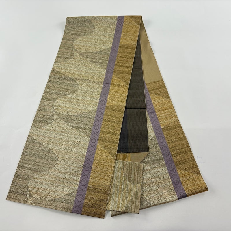 【名古屋帯】 黄色系 薄黄土色 優品 A 帯丈356cm~365cm 4000-7980 美品 二万以下