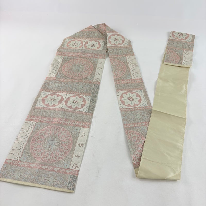 【名古屋帯】 白系 ベージュ 優品 A 帯丈366cm~400cm 4000-7980 美品 二万以下