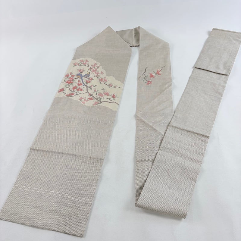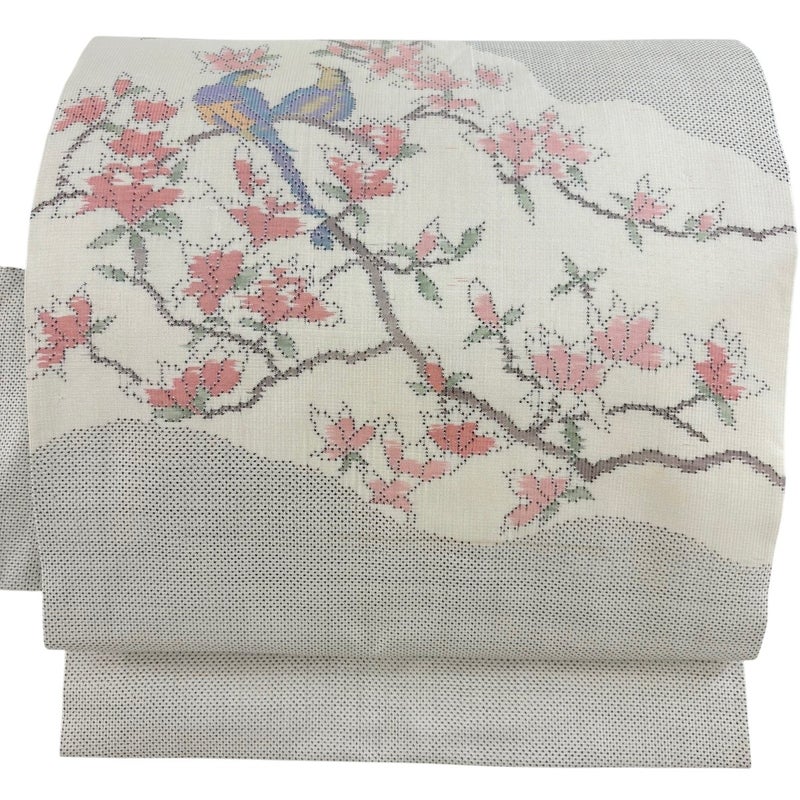 【名古屋帯】 白系 ベージュ 優品 B 帯丈356cm~365cm -3980 二万以下