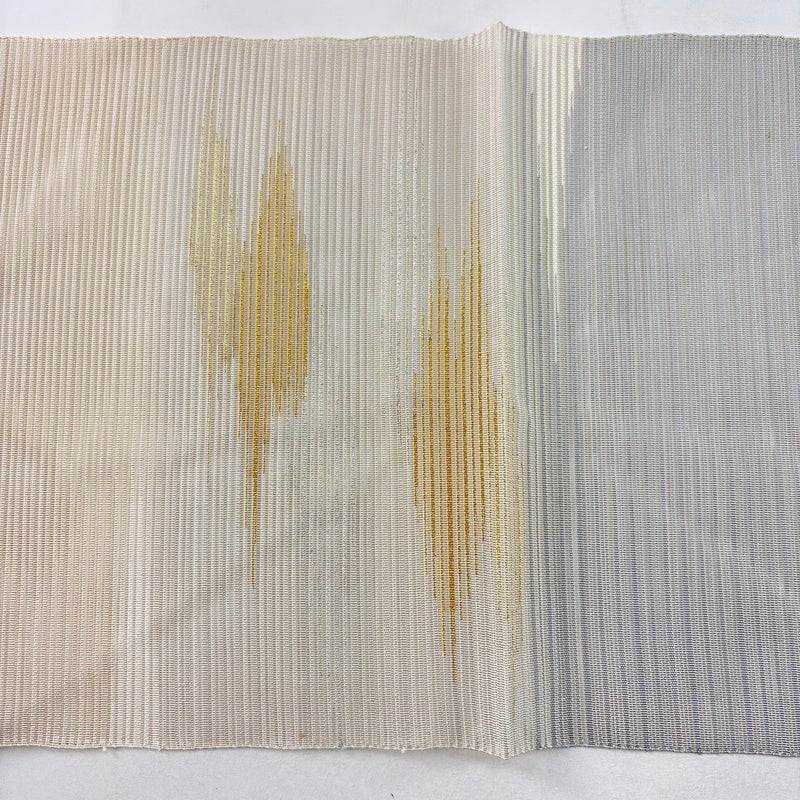 夏帯でございます。 セミフォーマルでお使いいただける名古屋帯でございます。 見る人に重たい印象を感じさせない女性ならではの、気品豊かな一品です。 締め跡がございます。 表地全体にヤケがございます。 リユース品としては良い状態で、まだまだご活用頂けると思われます。 ※なお、厳しく商品の状態確認を行っておりますが、記載の汚れ以外にも見落とし箇所がある可能性がある旨ご了承いただけますと幸いです。 沢山の商品の中からご覧いただき誠にありがとうございます。