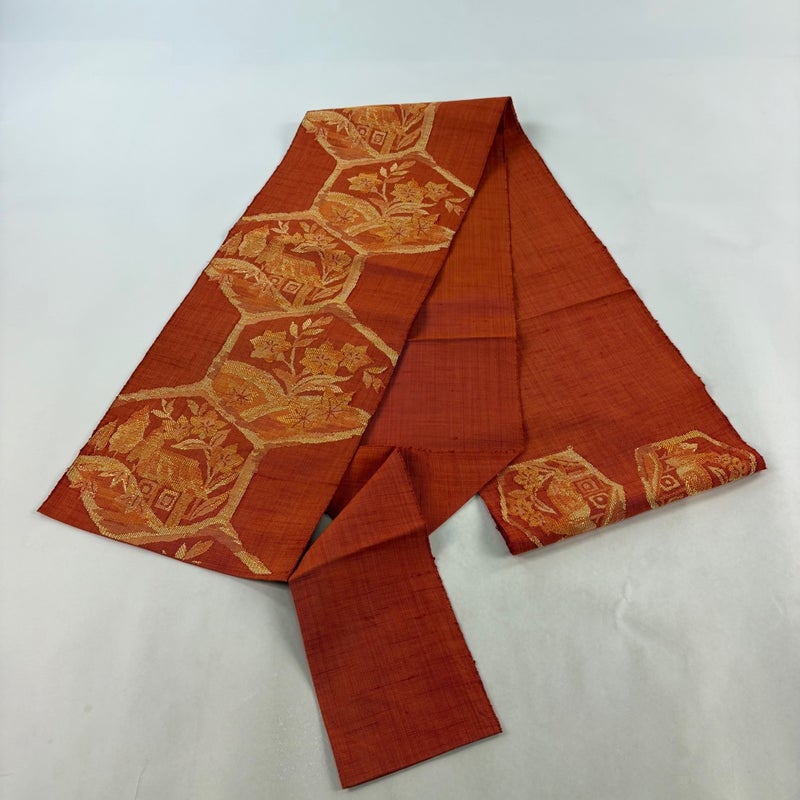 【名古屋帯】 赤系 オレンジ 優品 B 帯丈356cm~365cm -3980 二万以下