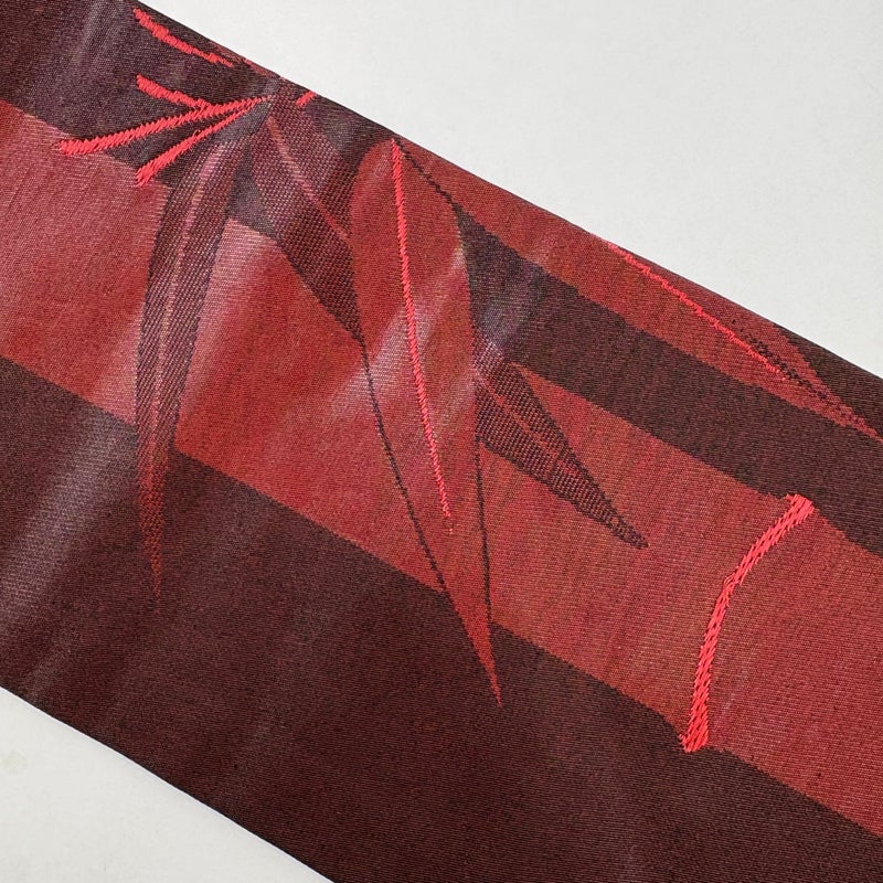 【名古屋帯】 赤系 えんじ色 優品 B 帯丈355cm以下 -3980 二万以下