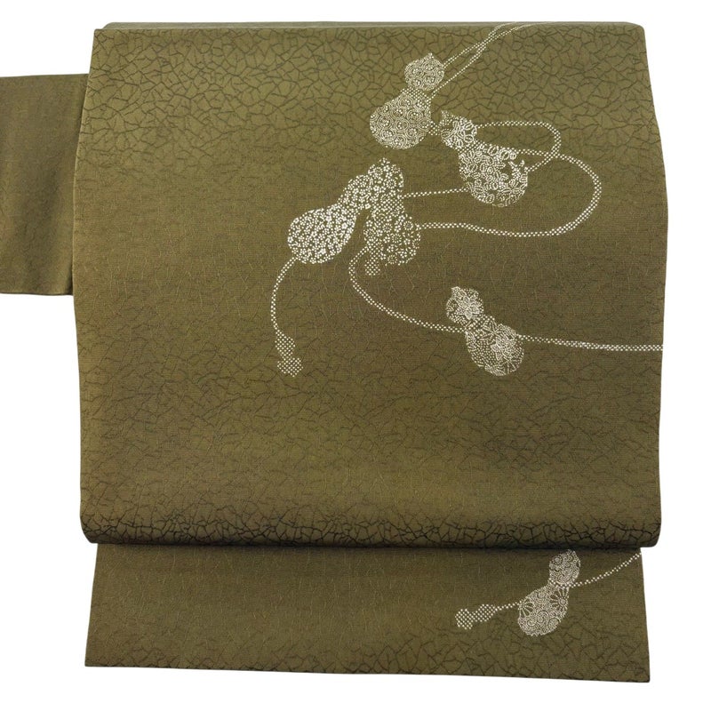 【名古屋帯】 茶系 茶緑色 優品 A 帯丈366cm~400cm 4000-7980 美品 二万以下