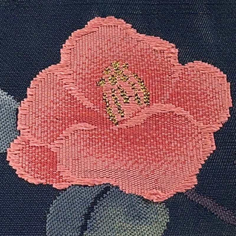 セミフォーマルでお使いいただける名古屋帯でございます。 見る人に重たい印象を感じさせない女性ならではの、気品豊かな一品です。 締め跡がございます。 お太鼓にシワ、お太鼓に刺繍糸のゆるみがございます。 裏地に薄いシミがございます。 ※商品の仕立て上、垂先の織り出し口から裏地がはみ出ております。 リユース品としては良い状態で、まだまだご活用頂けると思われます。 ※なお、厳しく商品の状態確認を行っておりますが、記載の汚れ以外にも見落とし箇所がある可能性がある旨ご了承いただけますと幸いです。 沢山の商品の中からご覧いただき誠にありがとうございます。