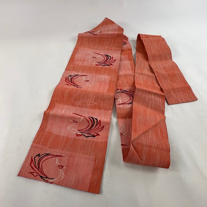 【名古屋帯】 赤系 サーモンピンク 優品 A 帯丈355cm以下 4000-7980 美品 二万以下