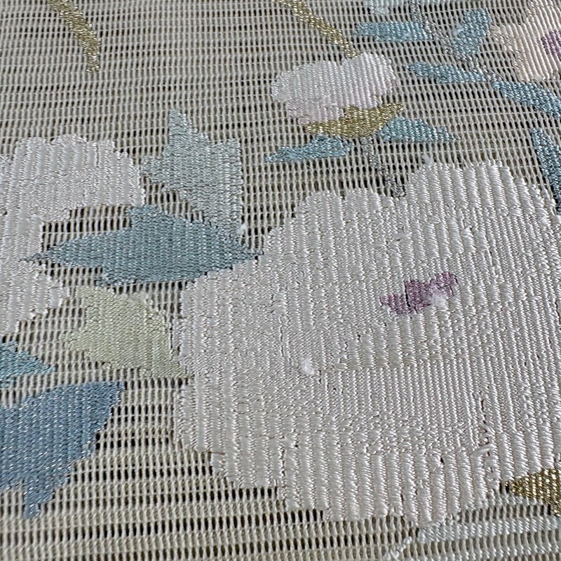 セミフォーマルでお使いいただける夏物の名古屋帯でございます。 見る人に重たい印象を感じさせない女性ならではの、気品豊かな一品です。 締め跡がございます。 お太鼓所々と前柄所々に金銀糸の変色がございます。 リユース品としては良い状態で、まだまだご活用頂けると思われます。 ※なお、厳しく商品の状態確認を行っておりますが、記載の汚れ以外にも見落とし箇所がある可能性がある旨ご了承いただけますと幸いです。 沢山の商品の中からご覧いただき誠にありがとうございます。