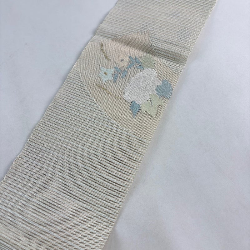 【着物ランク】秀品 【素材】正絹 【帯丈】約384.5cm 【帯幅】約31cm 【帯仕立て】仕立て上がり 【状態ランク】ランクB 【帯着用シーン】セミフォーマル(色無地・付下げ)