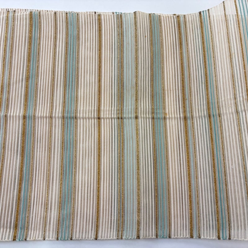 夏帯でございます。 セミフォーマルでお使いいただける名古屋帯でございます。 見る人に重たい印象を感じさせない女性ならではの、気品豊かな一品です。 締め跡がございます。 手先前柄間に生地のヨレ、表地所々にシミ、表地所々に金糸の変色がございます。 リユース品としては良い状態で、まだまだご活用頂けると思われます。 ※なお、厳しく商品の状態確認を行っておりますが、記載の汚れ以外にも見落とし箇所がある可能性がある旨ご了承いただけますと幸いです。 沢山の商品の中からご覧いただき誠にありがとうございます。