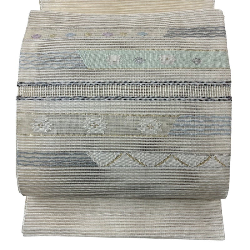 【名古屋帯】 灰色系 灰白 秀品 A 帯丈366cm~400cm 9990-29990 美品 二万以下