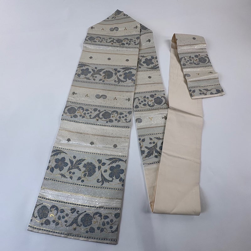 【名古屋帯】 金・銀系 銀色 優品 A 帯丈356cm~365cm 4000-7980 美品 二万以下