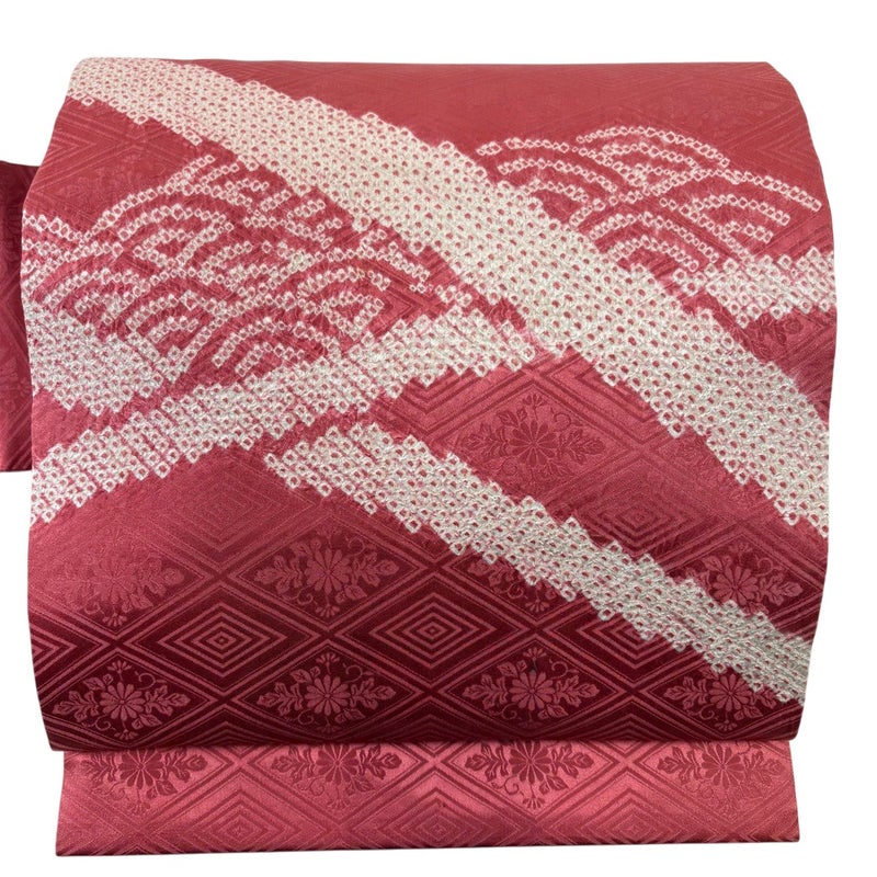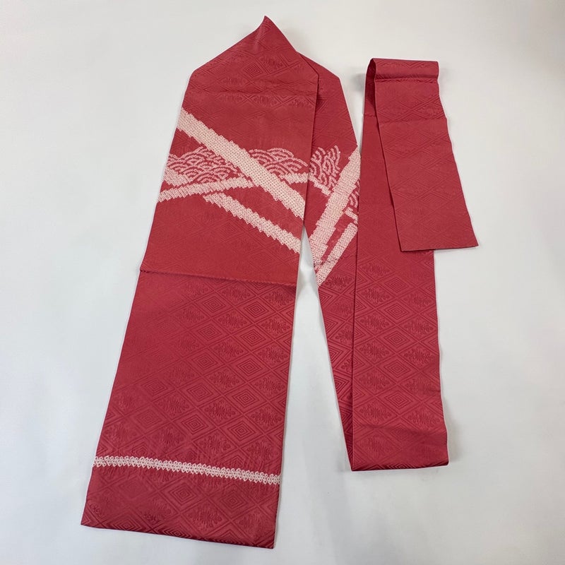 【名古屋帯】 赤系 濃ピンク 優品 B 帯丈355cm以下 -3980 二万以下