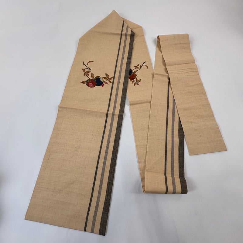 普段使いでお使いいただける名古屋帯でございます。 カジュアルな装いに合わせてお使いください。 お太鼓に小さなシミ、前柄柄部分とお太鼓垂先間に薄いシミがございます。 リユース品としては目立った染み傷なく、状態の良いお品でございます。 ※なお、厳しく商品の状態確認を行っておりますが、記載の汚れ以外にも見落とし箇所がある可能性がある旨ご了承いただけますと幸いです。 沢山の商品の中からご覧いただき誠にありがとうございます。