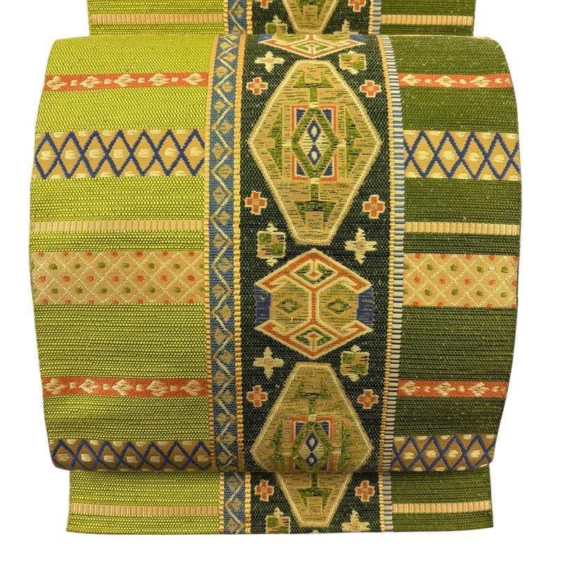 【名古屋帯】 緑系 黄緑色 優品 B 帯丈356cm~365cm -3980 二万以下
