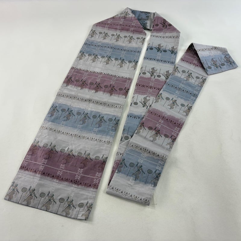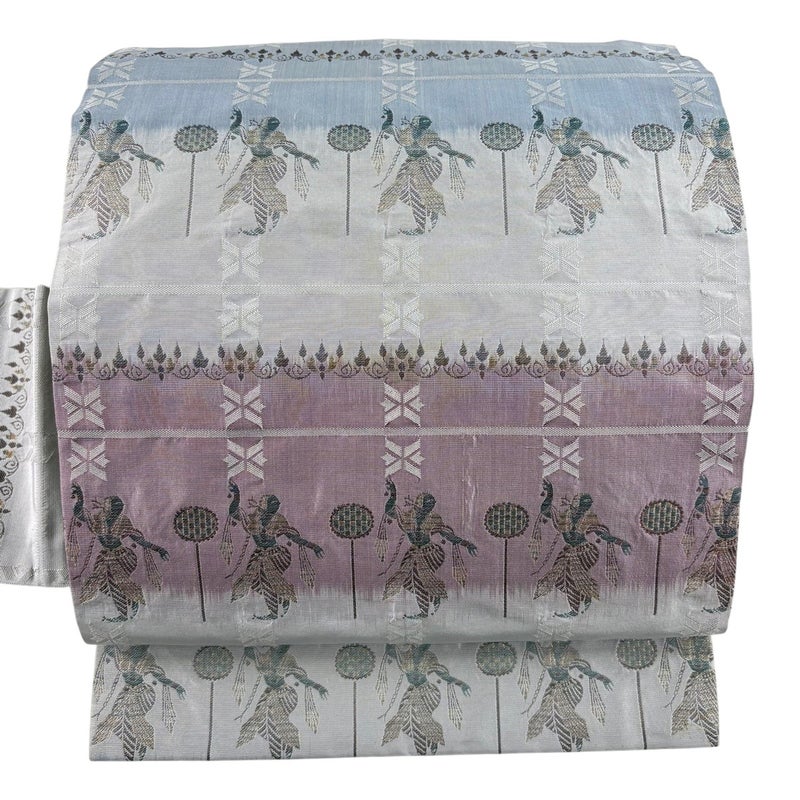【名古屋帯】 灰色系 灰紫 秀品 A 帯丈355cm以下 9990-29990 美品 二万以下