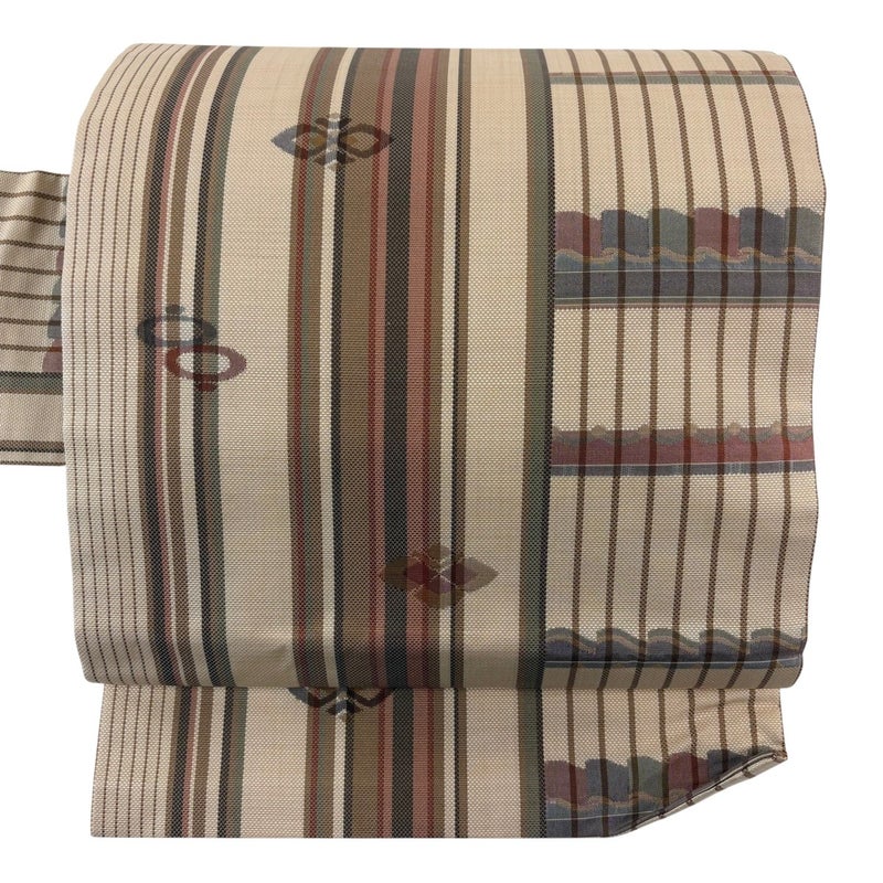 【着物ランク】秀品 【素材】正絹 【帯丈】約363.5cm 【帯幅】約30cm 【帯仕立て】仕立て上がり 【状態ランク】ランクB 【帯着用シーン】普段使いの洒落帯(紬・小紋)