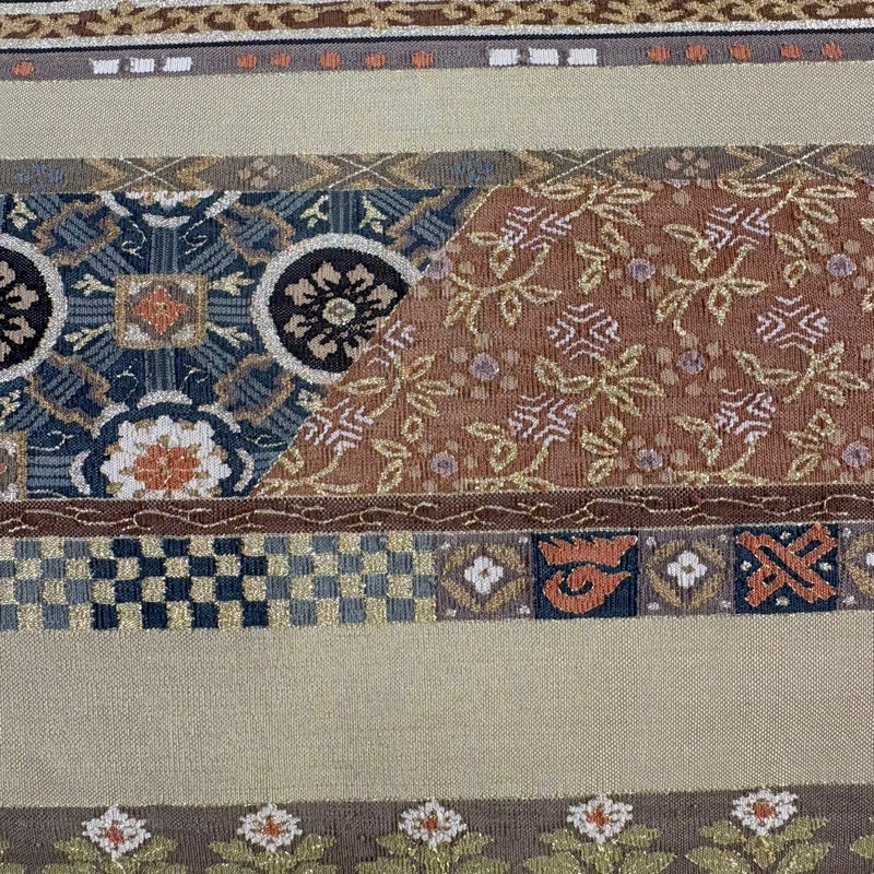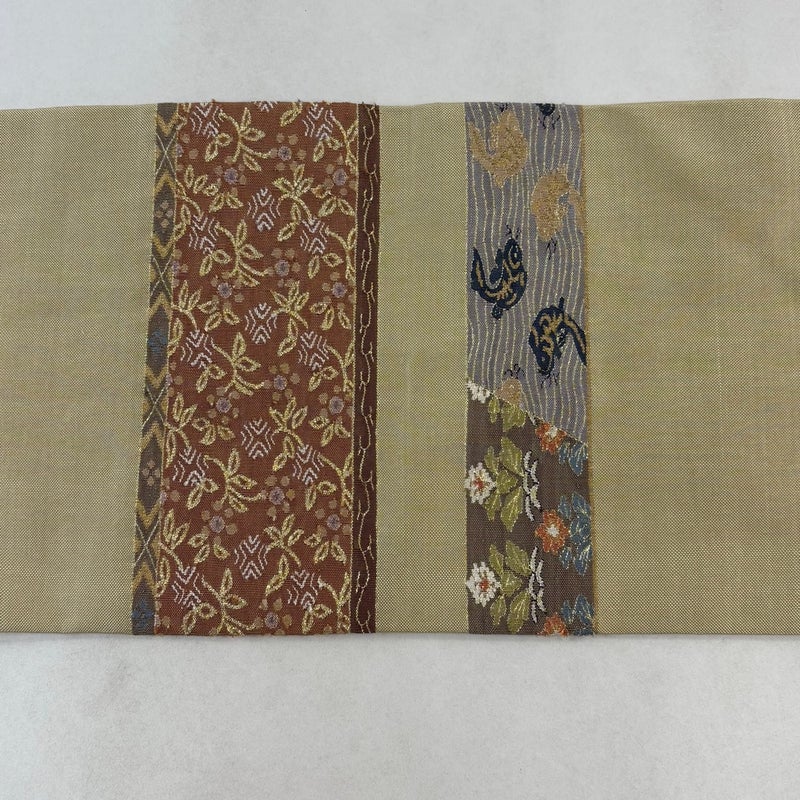 セミフォーマルでお使いいただける名古屋帯でございます。 見る人に重たい印象を感じさせない女性ならではの、気品豊かな一品です。 締め跡がございます。 リユース品としては目立った染み傷なく、状態の良いお品でございます。 ※なお、厳しく商品の状態確認を行っておりますが、記載の汚れ以外にも見落とし箇所がある可能性がある旨ご了承いただけますと幸いです。 沢山の商品の中からご覧いただき誠にありがとうございます。