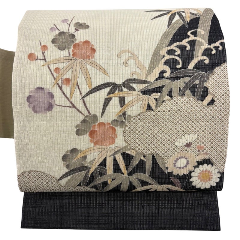【名古屋帯】 白系 ベージュ 名品 A 帯丈366cm~400cm 9990-29990 美品 五万以下