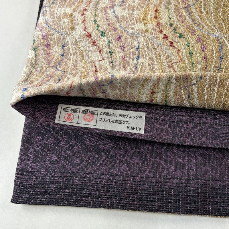 セミフォーマルでお使いいただける袋名古屋帯でございます。 見る人に重たい印象を感じさせない女性ならではの、気品豊かな一品です。 リユース品としては目立った染み傷なく、状態の良いお品でございます。 ※なお、厳しく商品の状態確認を行っておりますが、記載の汚れ以外にも見落とし箇所がある可能性がある旨ご了承いただけますと幸いです。 沢山の商品の中からご覧いただき誠にありがとうございます。