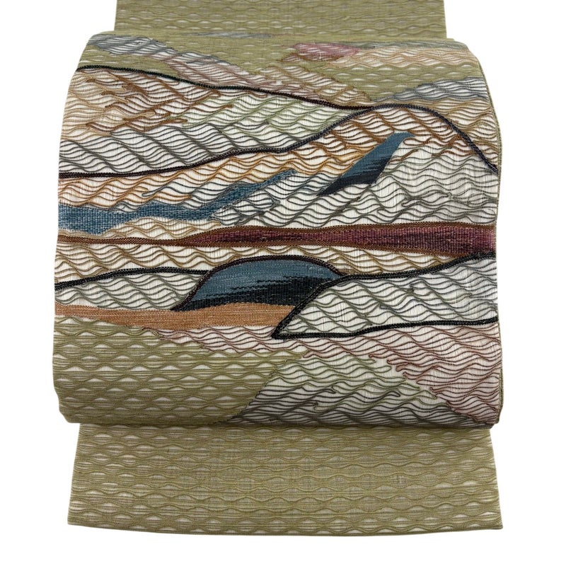 【袋名古屋帯】 灰色系 灰緑 秀品 A 帯丈366cm~400cm 9990-29990 美品 二万以下