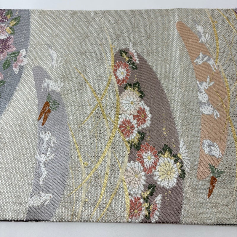 【袋名古屋帯】 白系 ベージュ 秀品 A 帯丈366cm~400cm 9990-29990 美品 二万以下