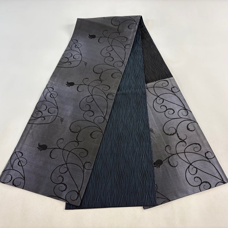 【袋名古屋帯】 灰色系 青灰色 優品 B 帯丈366cm~400cm -3980 二万以下