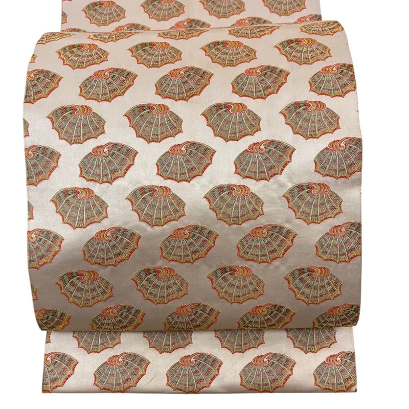 【開き名古屋帯】 白系 ベージュ 秀品 C 帯丈356cm~365cm 7990-9980 二万以下