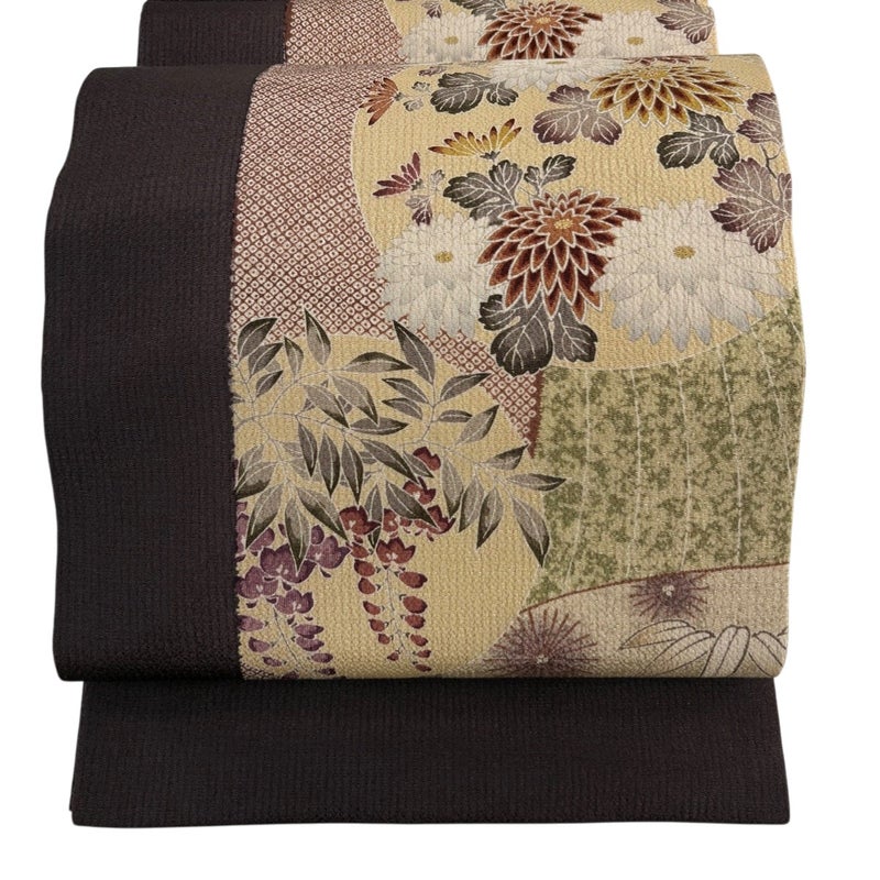 【開き名古屋帯】 茶系 茶紫 秀品 A 帯丈366cm~400cm 9990-29990 美品 二万以下