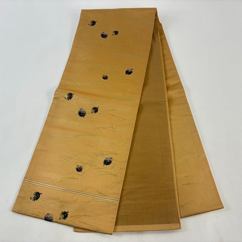 【開き名古屋帯】 黄色系 黄土色 秀品 B 帯丈355cm以下 4000-7980 二万以下