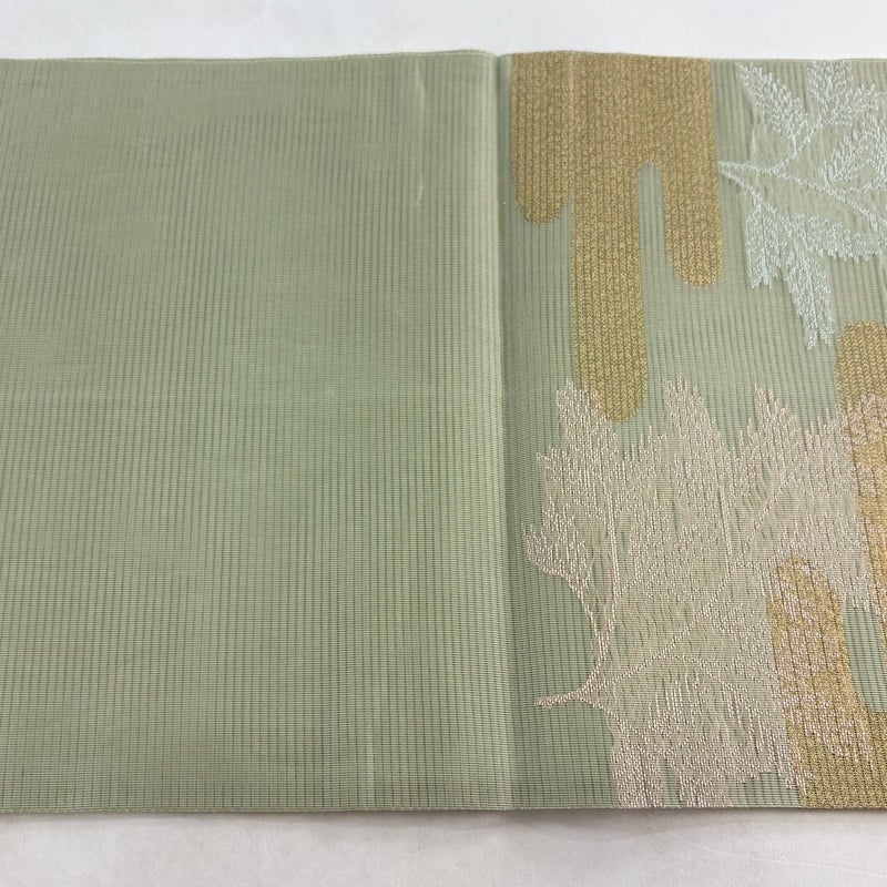 【開き名古屋帯】 緑系 よもぎ色 秀品 A 帯丈366cm~400cm 9990-29990 美品 二万以下