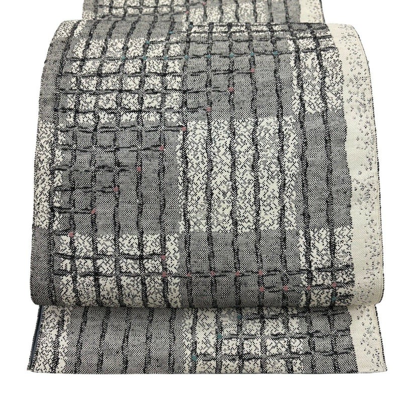 【開き名古屋帯】 灰色系 灰色 秀品 A 帯丈356cm~365cm 9990-29990 美品 二万以下