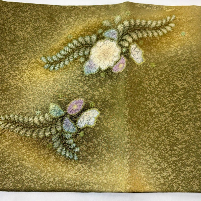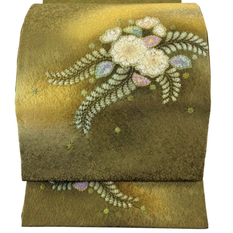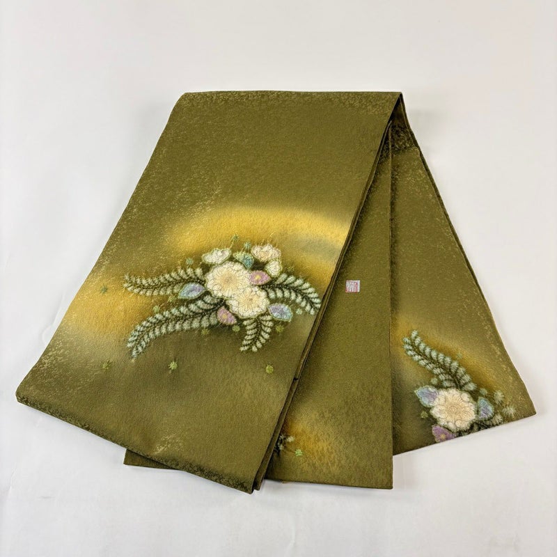 【開き名古屋帯】 緑系 鶯色 名品 A 帯丈436cm以上 9990-29990 美品 二万以下