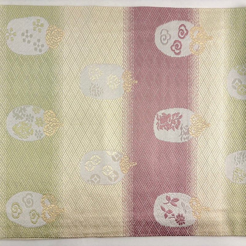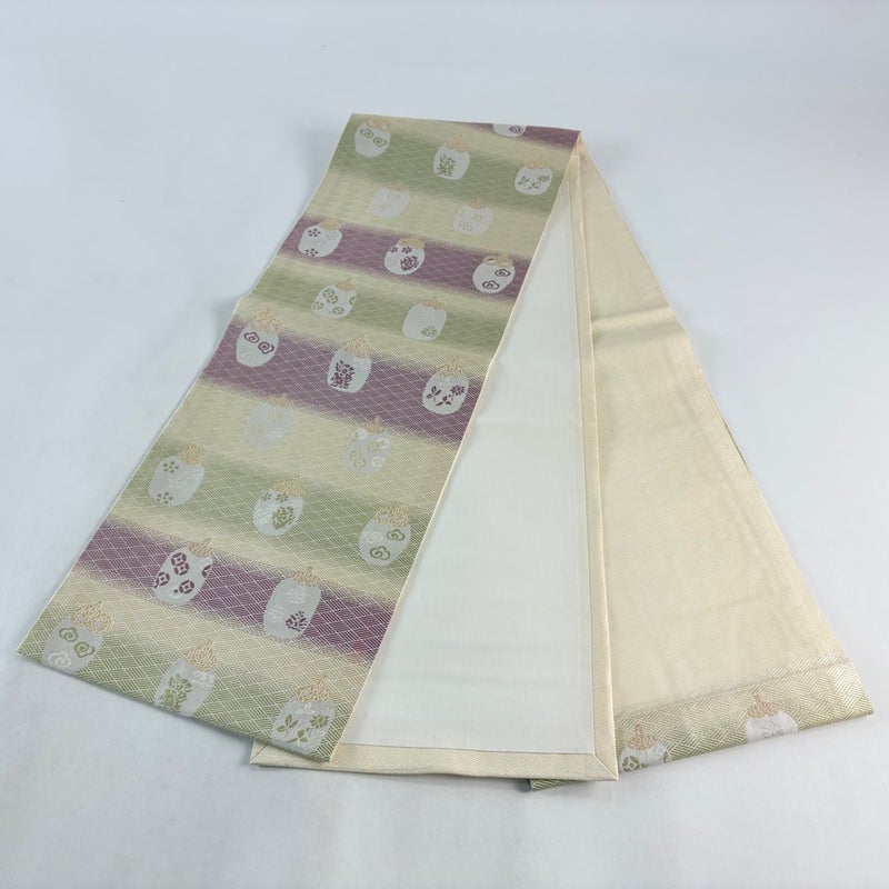 【開き名古屋帯】 白系 ベージュ 秀品 B 帯丈355cm以下 7990-9980 二万以下