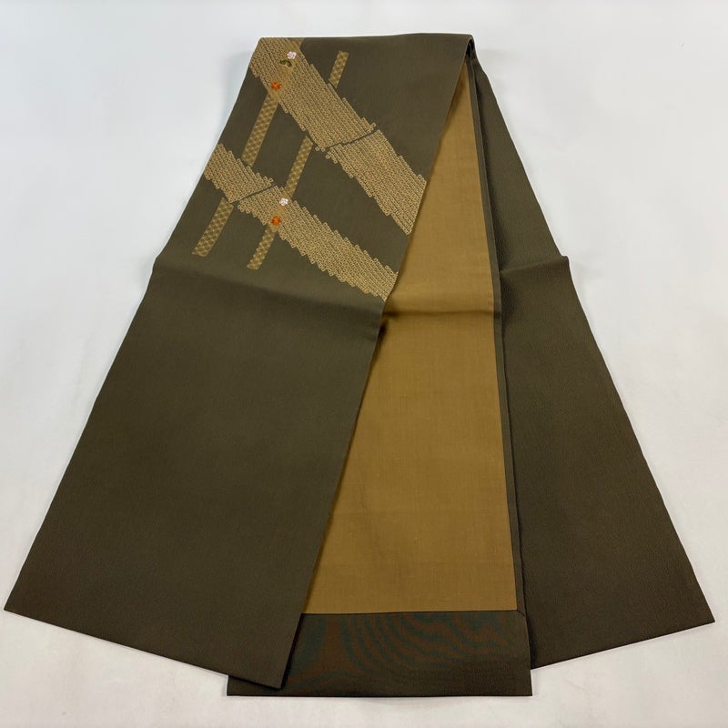 【開き名古屋帯】 茶系 茶緑色 秀品 B 帯丈366cm~400cm 7990-9980 二万以下
