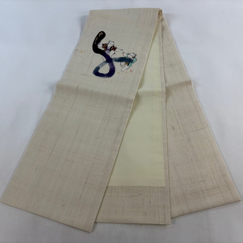 【開き名古屋帯】 白系 ベージュ 秀品 B 帯丈366cm~400cm 7990-9980 二万以下