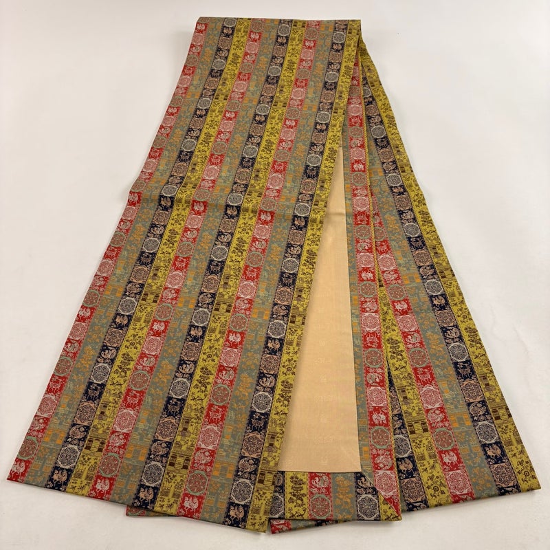 【開き名古屋帯】 黄色系 薄黄土色 逸品 A 帯丈356cm~365cm 30000- 美品 五万以下