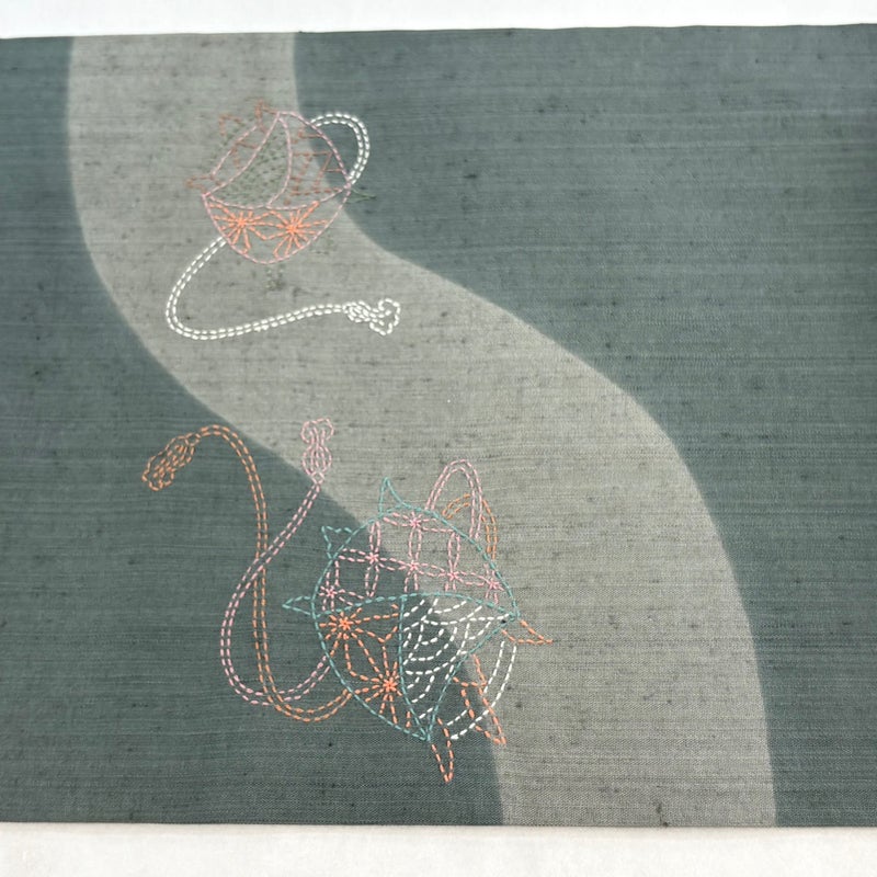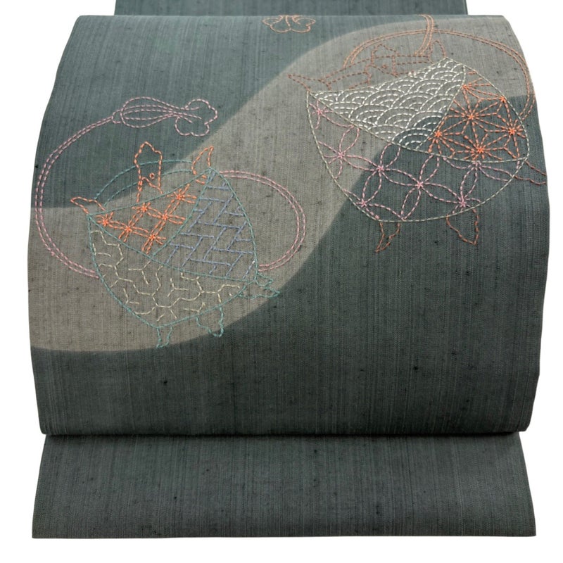 【開き名古屋帯】 灰色系 灰緑 秀品 A 帯丈366cm~400cm 9990-29990 美品 二万以下