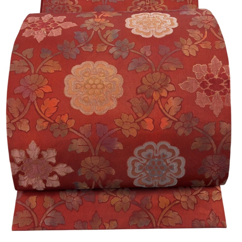 【開き名古屋帯】 赤系 茜色 優品 B 帯丈356cm~365cm -3980 二万以下