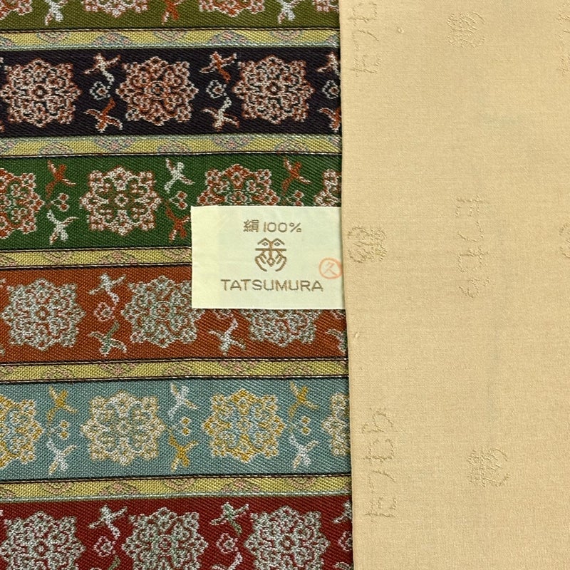 古代織物の研究と復元を重ね「美術織物」という分野を確立した「龍村美術織物」の帯でございます。 普段使いでお使いいただける開き名古屋帯でございます。 カジュアルな装いに合わせてお使いください。 締め跡がございます。 お太鼓にシワがございます。 リユース品としては良い状態で、まだまだご活用頂けると思われます。 ※なお、厳しく商品の状態確認を行っておりますが、記載の汚れ以外にも見落とし箇所がある可能性がある旨ご了承いただけますと幸いです。 沢山の商品の中からご覧いただき誠にありがとうございます。