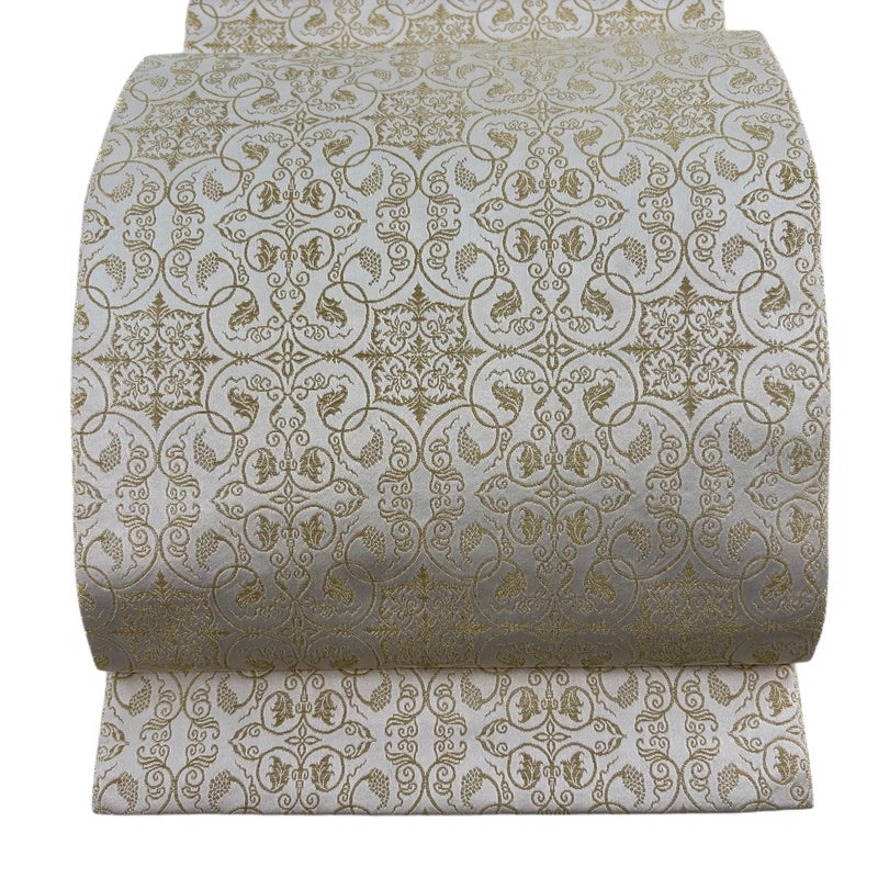 【開き名古屋帯】 白系 クリーム 秀品 C 帯丈355cm以下 7990-9980 二万以下