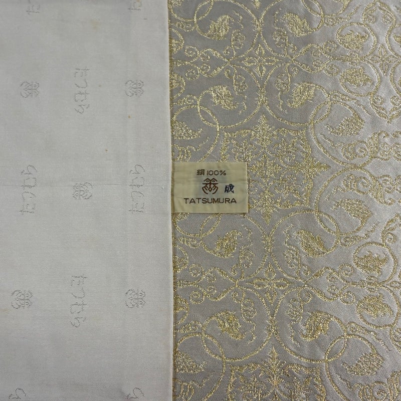 古代織物の研究と復元を重ね「美術織物」という分野を確立した「龍村美術織物」の帯でございます。 セミフォーマルでお使いいただける開き名古屋帯でございます。 見る人に重たい印象を感じさせない女性ならではの、気品豊かな一品です。 締め跡がございます。 裏地全体にシミがございます。 ご購入の際はその点ご留意ください。 ※なお、厳しく商品の状態確認を行っておりますが、記載の汚れ以外にも見落とし箇所がある可能性がある旨ご了承いただけますと幸いです。 沢山の商品の中からご覧いただき誠にありがとうございます。