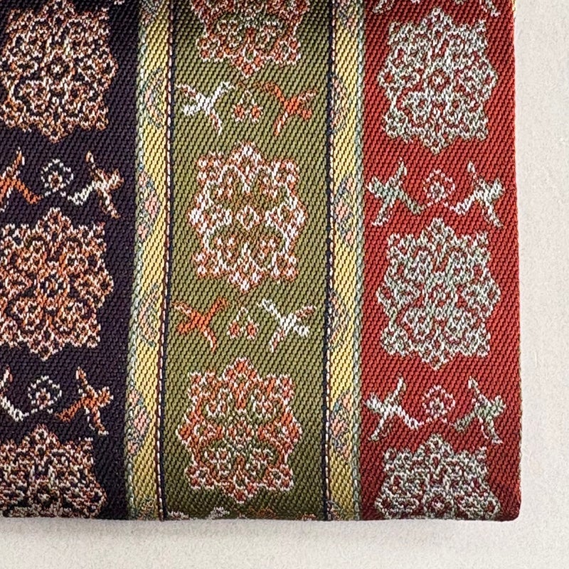 古代織物の研究と復元を重ね「美術織物」という分野を確立した「龍村美術織物」の帯でございます。 普段使いでお使いいただける開き名古屋帯でございます。 カジュアルな装いに合わせてお使いください。 手先前柄間にシミがございます。 裏地所々に薄いシミがございます。 リユース品としては良い状態で、まだまだご活用頂けると思われます。 ※なお、厳しく商品の状態確認を行っておりますが、記載の汚れ以外にも見落とし箇所がある可能性がある旨ご了承いただけますと幸いです。 沢山の商品の中からご覧いただき誠にありがとうございます。 【PR2】