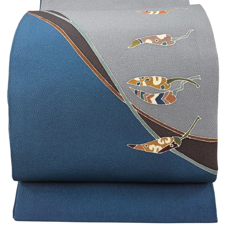 【開き名古屋帯】 灰色系 青灰色 秀品 B 帯丈366cm~400cm 7990-9980 二万以下