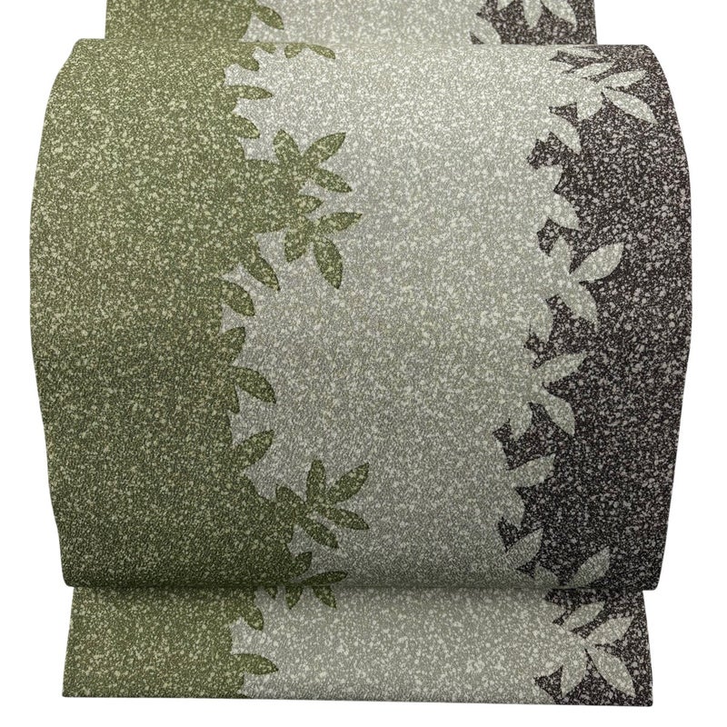 【開き名古屋帯】 緑系 抹茶色 秀品 A 帯丈366cm~400cm 9990-29990 美品 二万以下