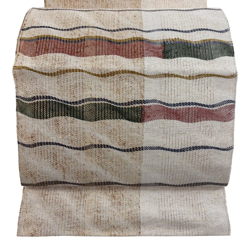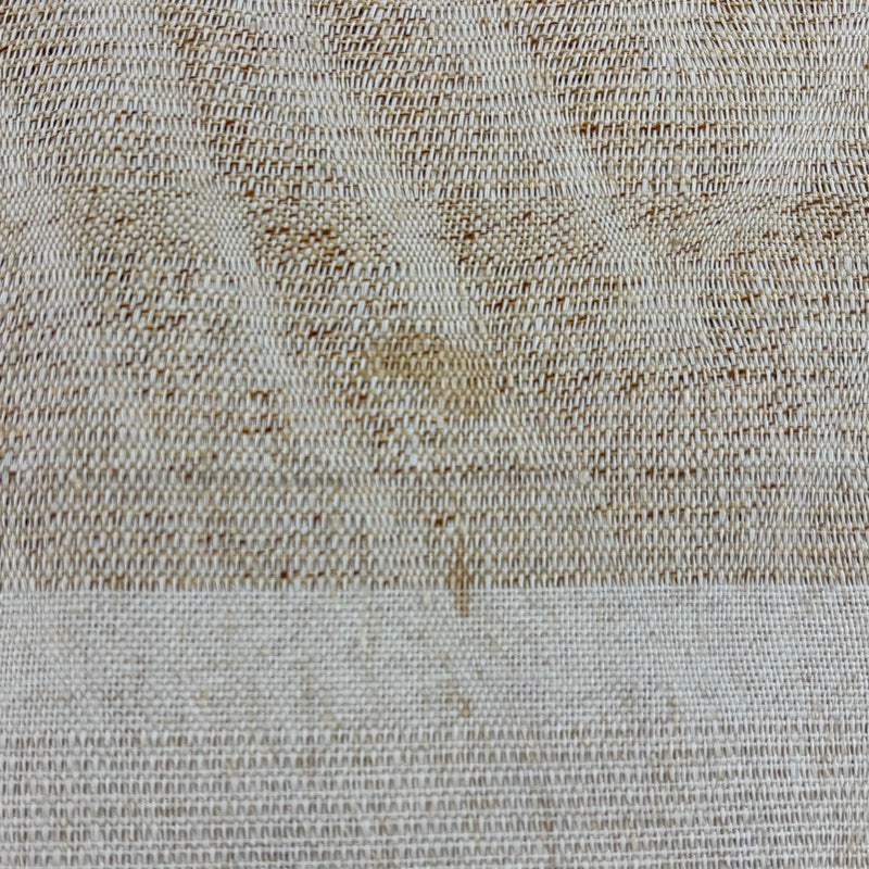 夏帯でございます。 普段使いでお使いいただける開き名古屋帯でございます。 カジュアルな装いに合わせてお使いください。 締め跡がございます。 手先前柄間所々にシミ、お太鼓にシワがございます。 リユース品としては良い状態で、まだまだご活用頂けると思われます。 ※なお、厳しく商品の状態確認を行っておりますが、記載の汚れ以外にも見落とし箇所がある可能性がある旨ご了承いただけますと幸いです。 沢山の商品の中からご覧いただき誠にありがとうございます。