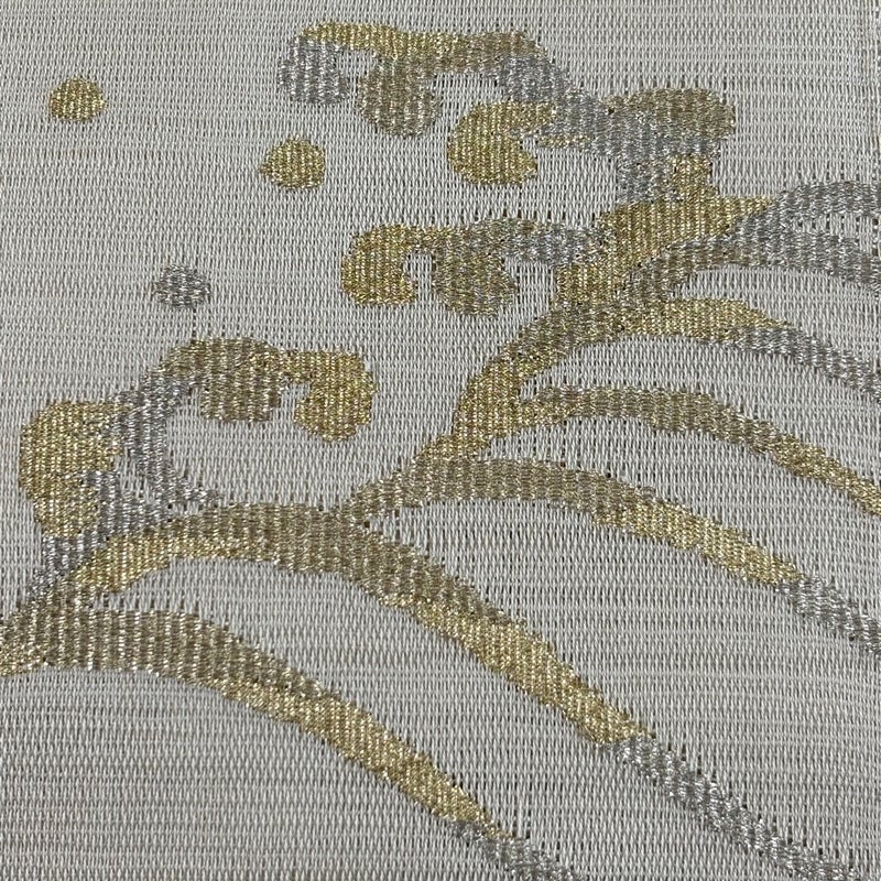 夏帯でございます。 セミフォーマルでお使いいただける開き名古屋帯でございます。 見る人に重たい印象を感じさせない女性ならではの、気品豊かな一品です。 締め跡がございます。 手先所々にシミ、締め跡沿いに汚れ、垂先に小さな銀糸の変色がございます。 リユース品としては良い状態で、まだまだご活用頂けると思われます。 ※なお、厳しく商品の状態確認を行っておりますが、記載の汚れ以外にも見落とし箇所がある可能性がある旨ご了承いただけますと幸いです。 沢山の商品の中からご覧いただき誠にありがとうございます。