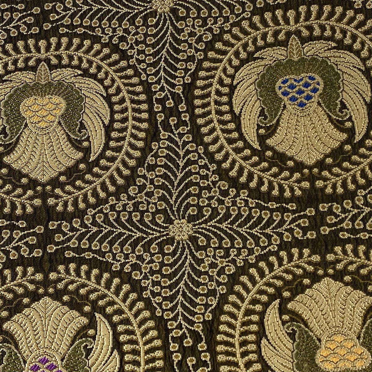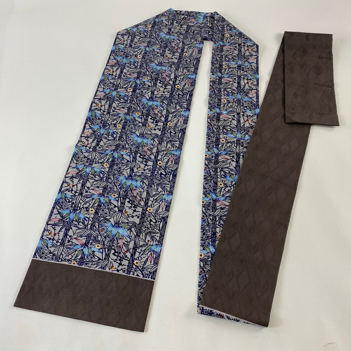 帯の格は着物とは逆で染よりも織のほうが格式が高く、名古屋帯は袋帯よりも格が低く様々な技法や生地で作成されているため組み合わせ数も多く場面によって使い分けることでセミフォーマルからカジュアルまで幅広く着用する事ができる帯です。 名古屋帯の名前の由来は名古屋の女学校の先生が考案したと言われるため名古屋帯という名前で呼ばれるようになりました。 形状はお太鼓部分までは通常の帯幅ですがそれ以降は幅が半分になっていることが多く、袋帯よりも短い作りになっているため一重太鼓でしか結ぶ事ができません。